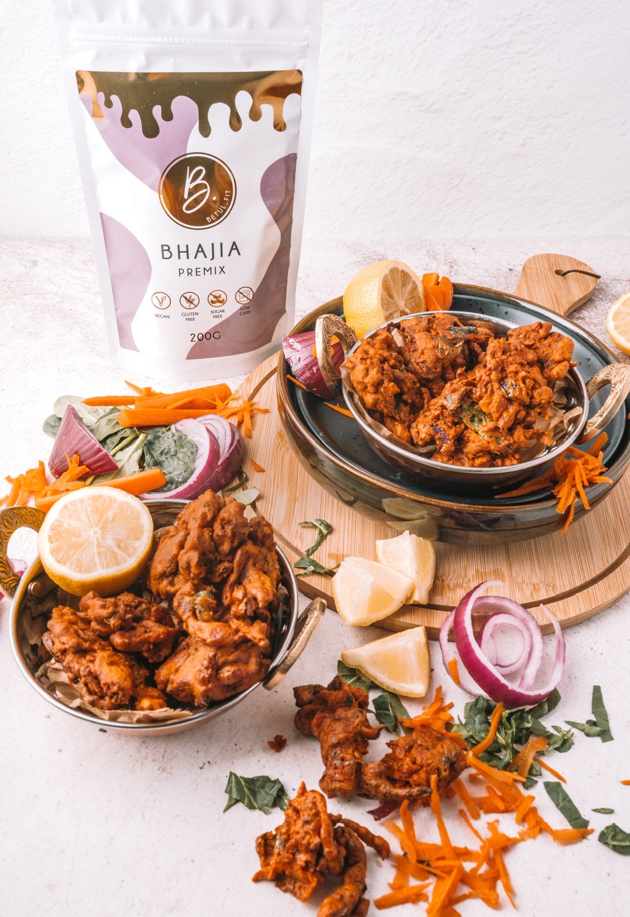 Recipe: 1 packet @Betul_fit Bhajia Premix 1 tsp baking powder, 3 green chillies, thinly chopped 1/2 cup carrots, grated ,1/2 cup spinach, chopped ,1/2 cup onions, chopped, 1/2 cup coriander, chopped, 1/4 cup water, or as required ,Odourless coconut oil, for frying